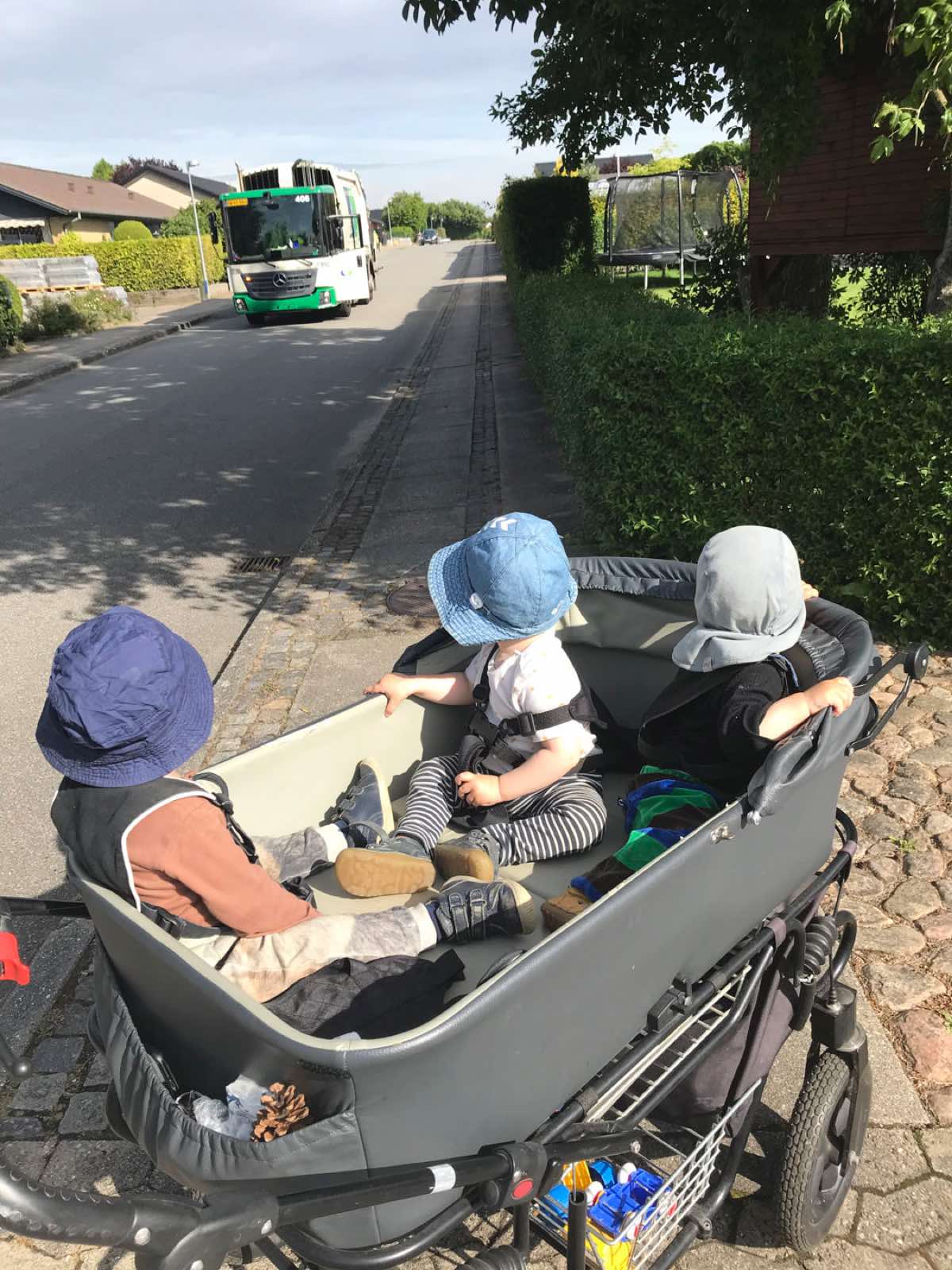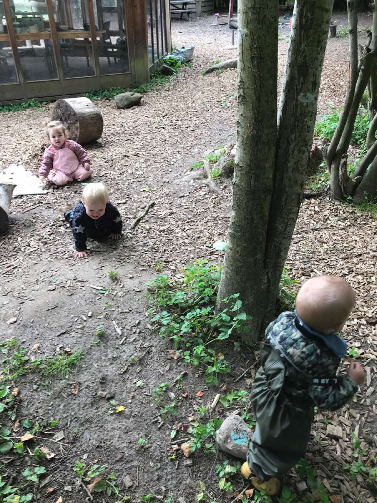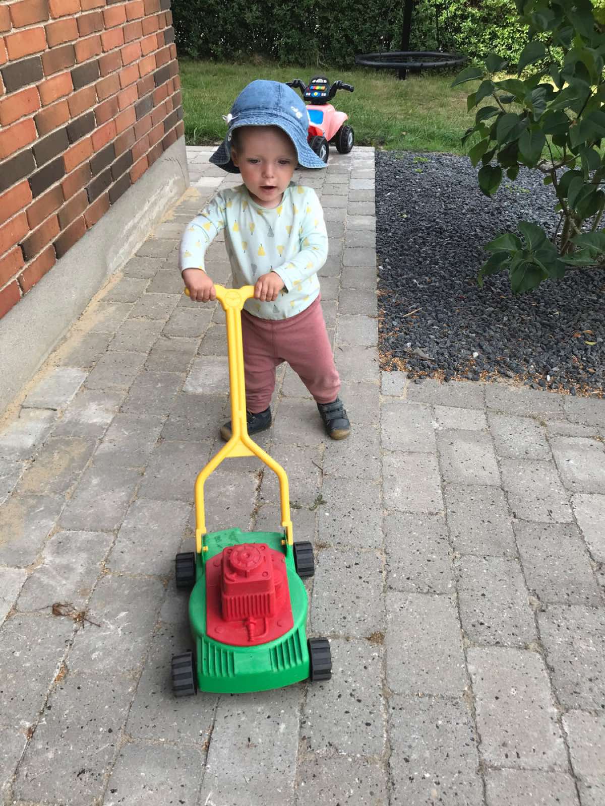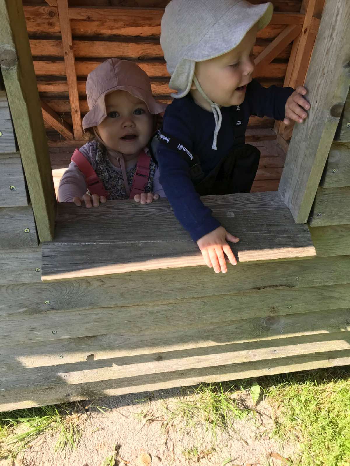 Vi er ofte på tur rundt i Hørning, fx på en legeplads, på udkig efter gravkøer, tog, dyr, eller hvad vi nu kan finde på.