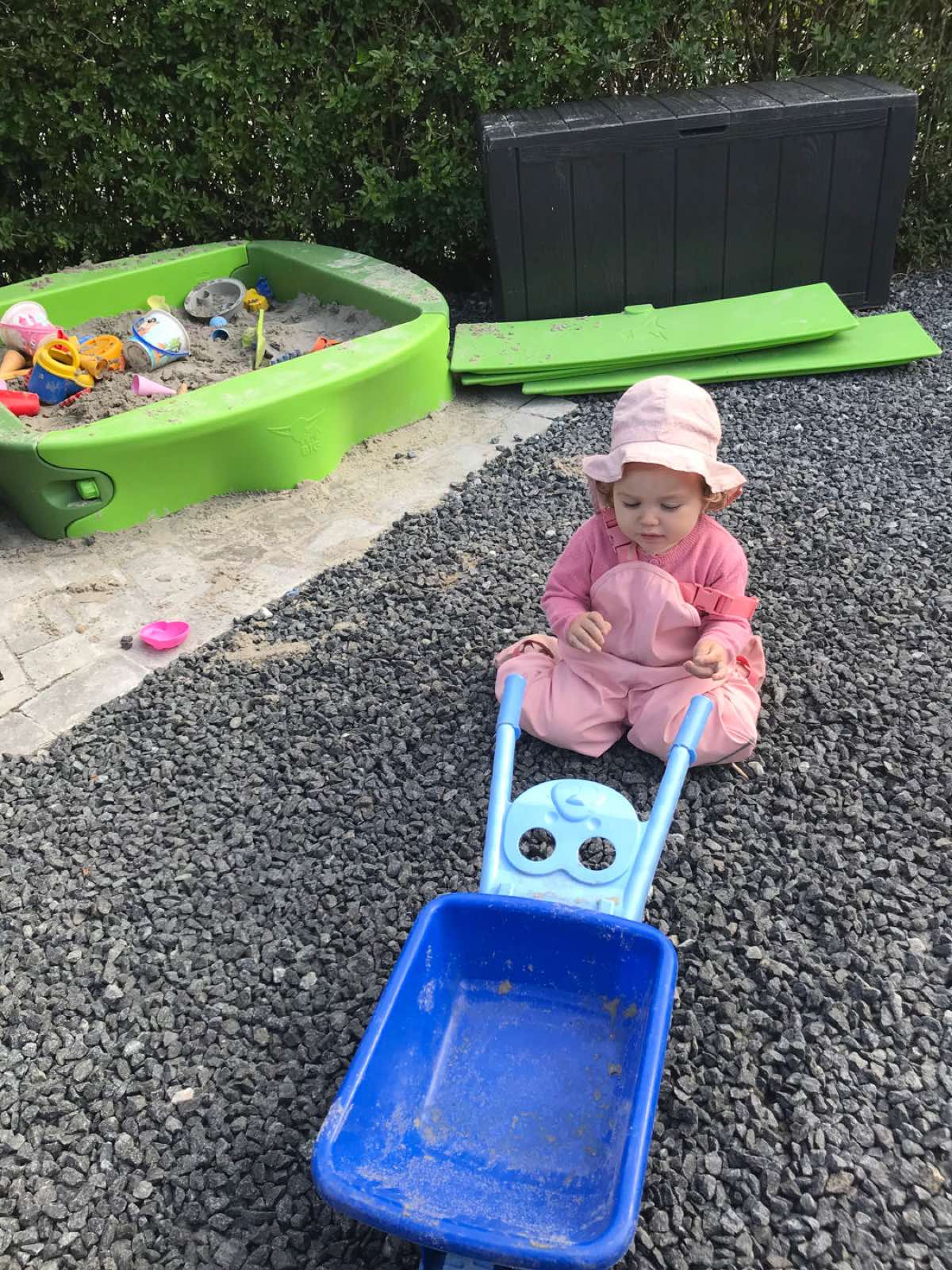 Barnevognen må gerne stå hos mig fra mandag til fredag. Barnevognene står i min lukkede carport, når de ikke er i brug. Den skal tages med hjem i weekenden. Ved sovetid sover børnene forskellige steder rundt i vores store lukkede have.